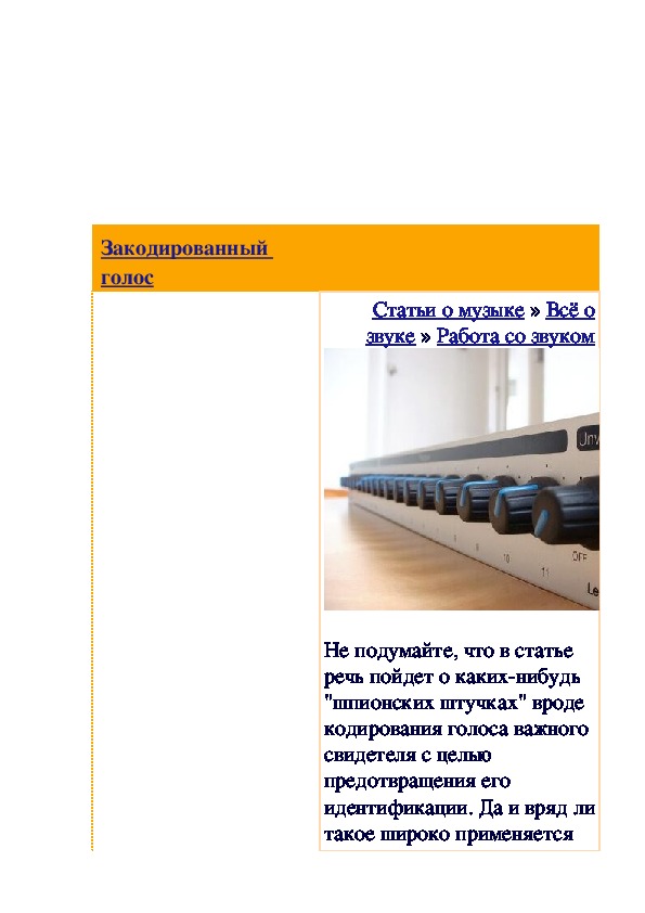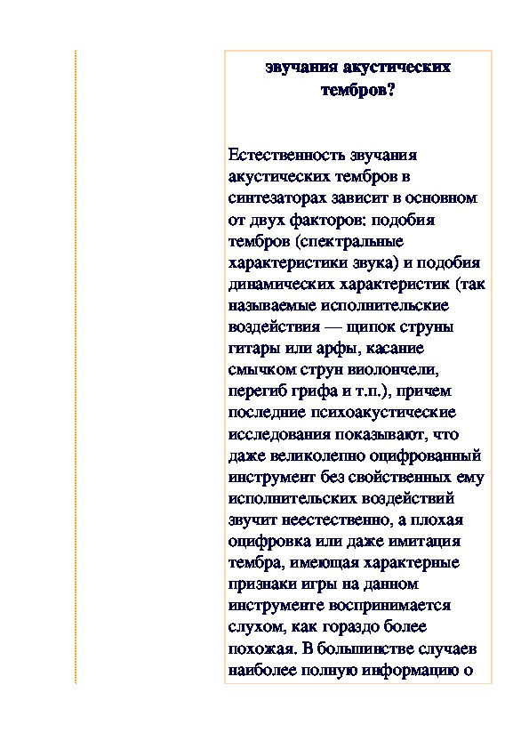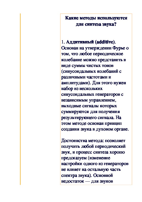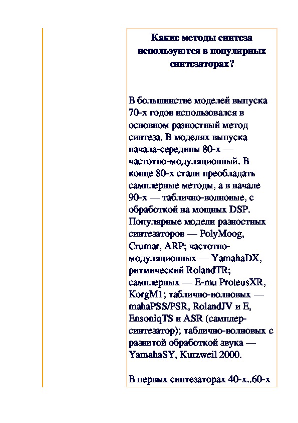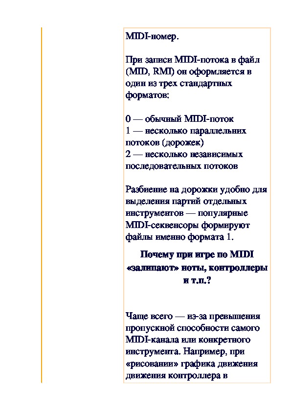 В статье в формате вопросов и ответов представлена важная информация для начинающих музыкантов о свойствах звука, параметрах звукового тракта, методах синтеза и обработки звука, о миди-синтезаторах и т.д.
