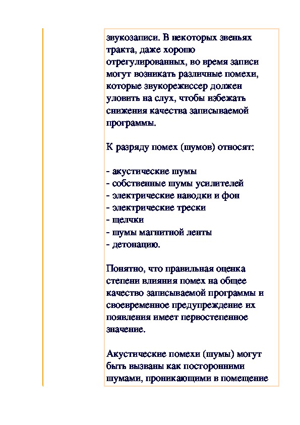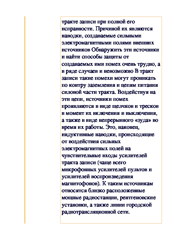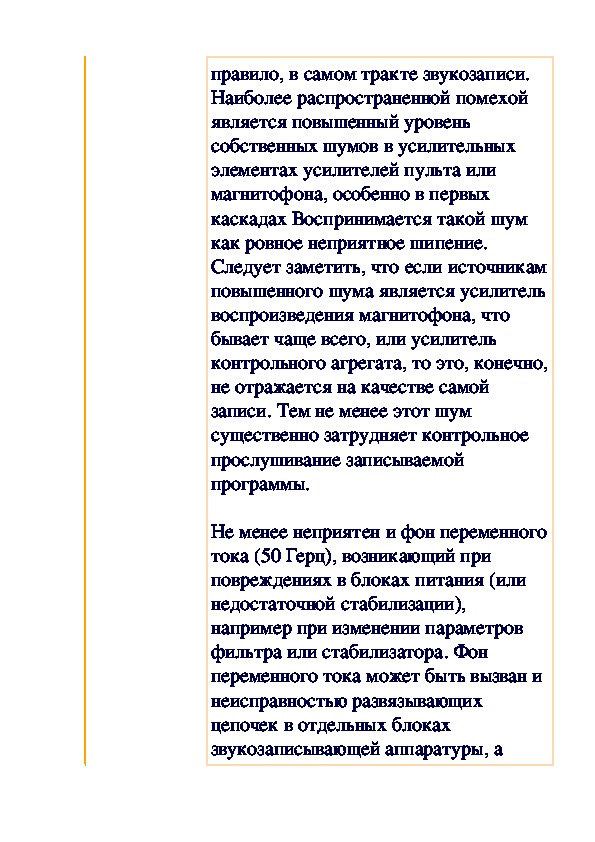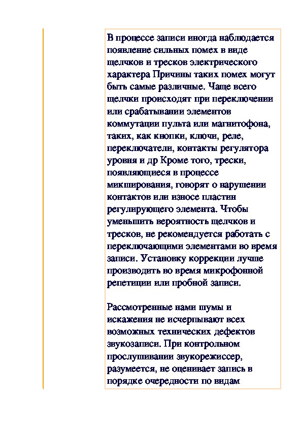 Электрические помехи возникают, какправило, в самом тракте звукозаписи.