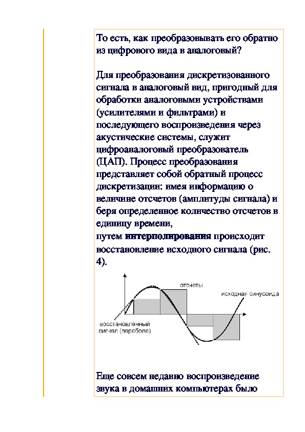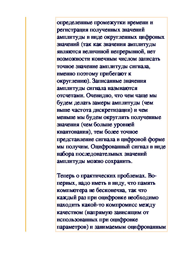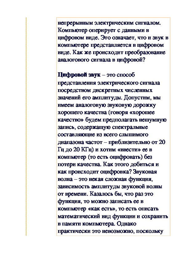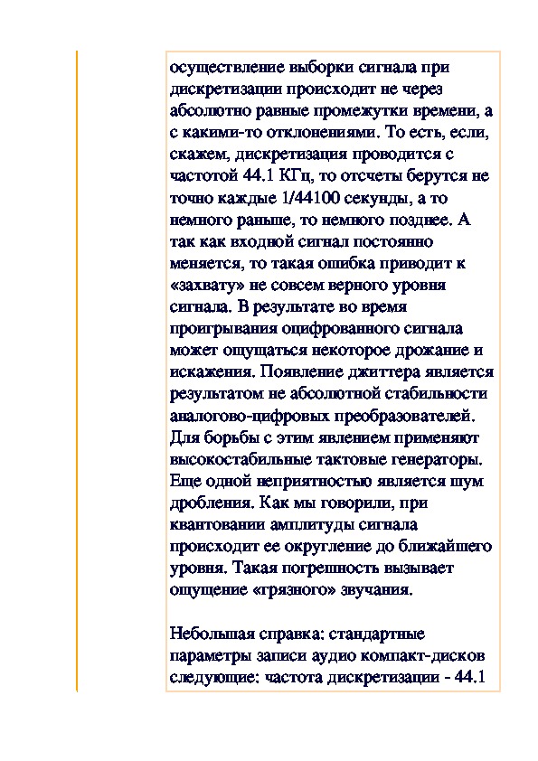 На вход цифрового процессора поступает аналоговый сигнал (например, музыка). Сперва этот сигнал должен быть преобразован в цифровой вид.
