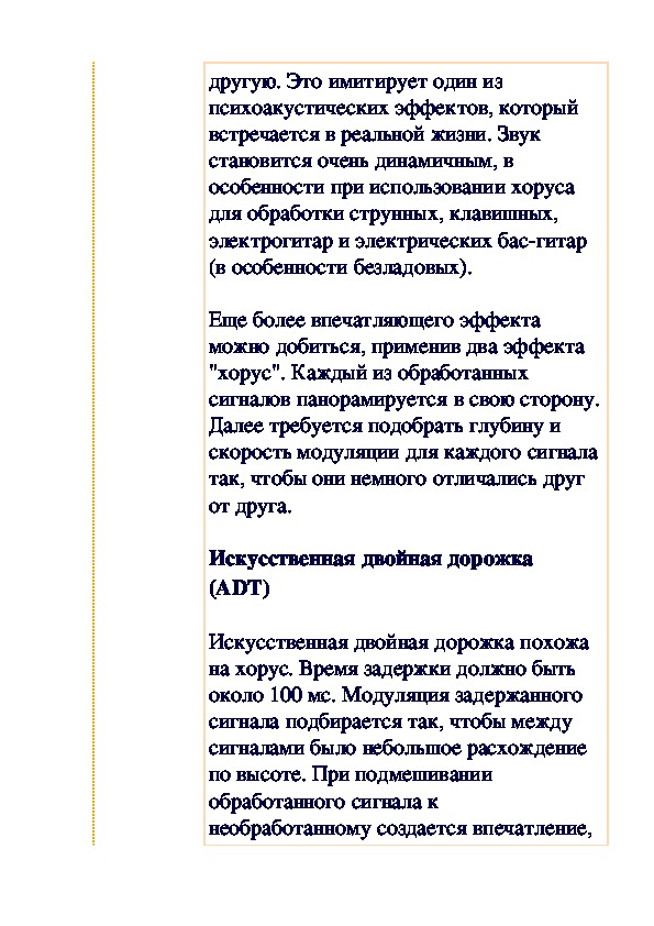 одну сторону, а сигнал с хорусом — вдругую. Это имитирует один из