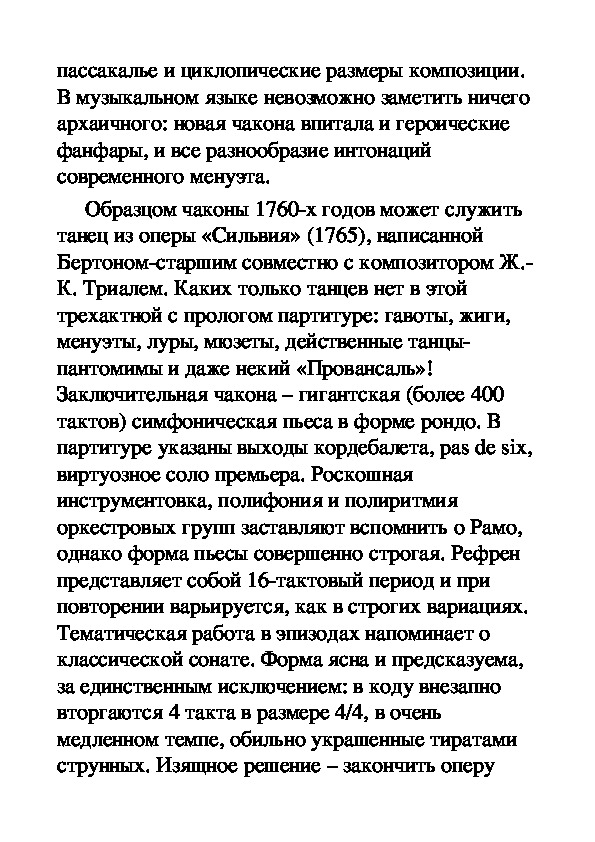 прекращалось сочинение новых чакон и пассакалий– барочные жанры вели интенсивную «жизнь после
