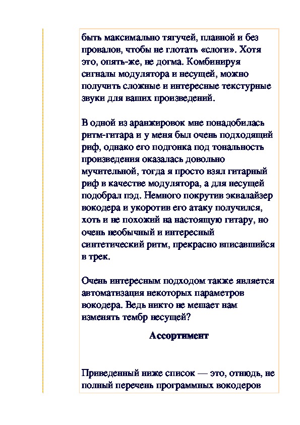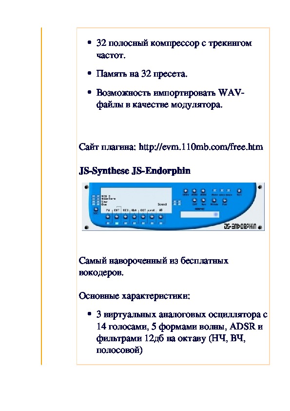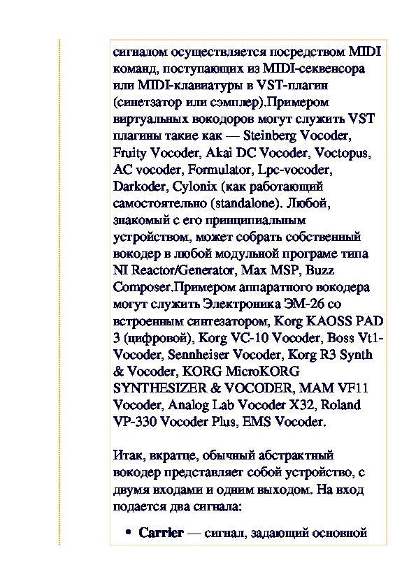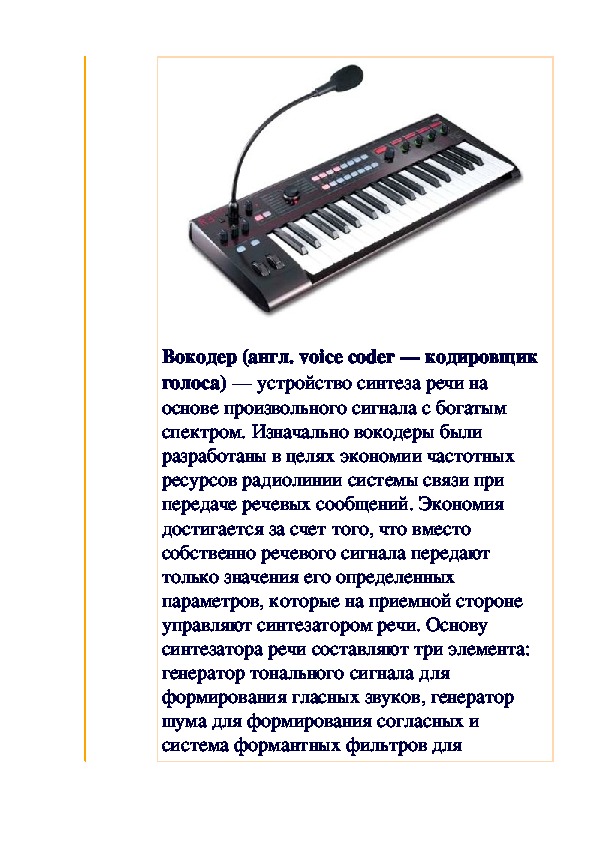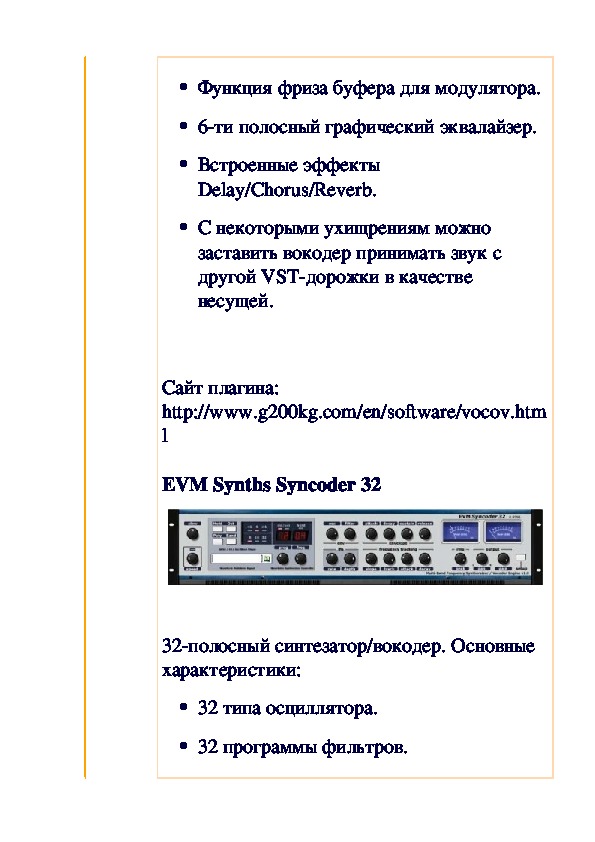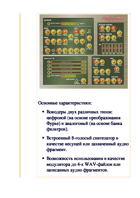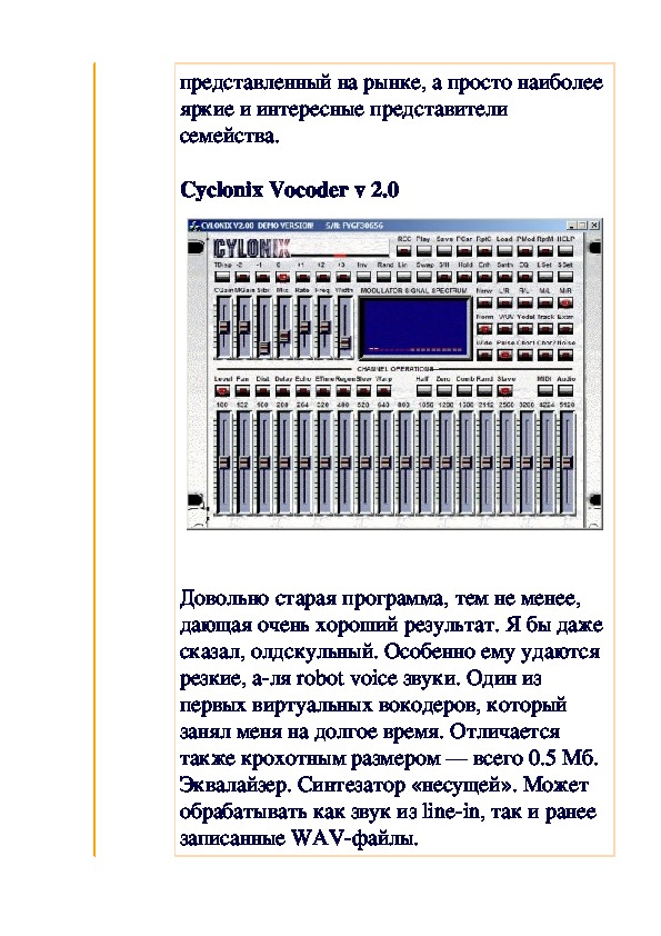 полный перечень программных вокодеровпредставленный на рынке, а просто наиболее
