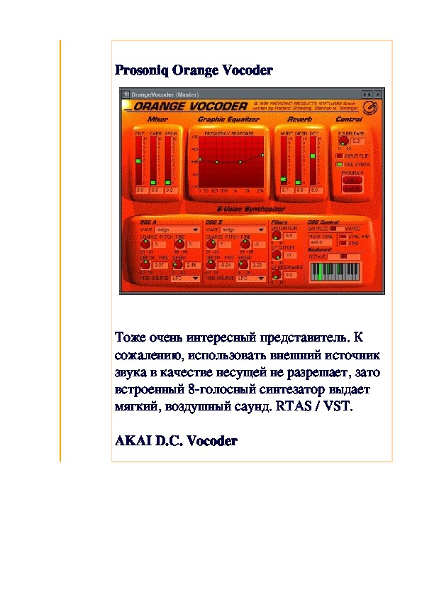 записанные WAVфайлы.Prosoniq Orange Vocoder