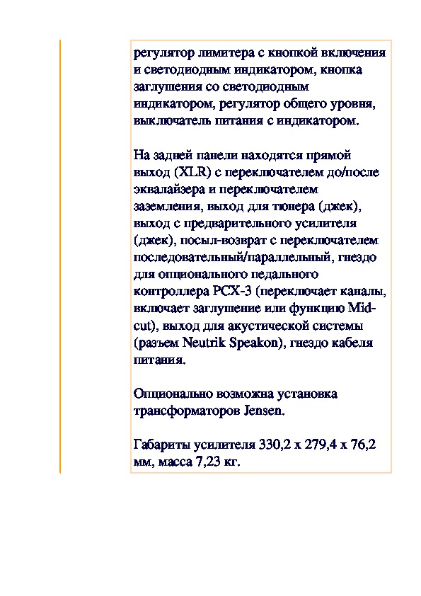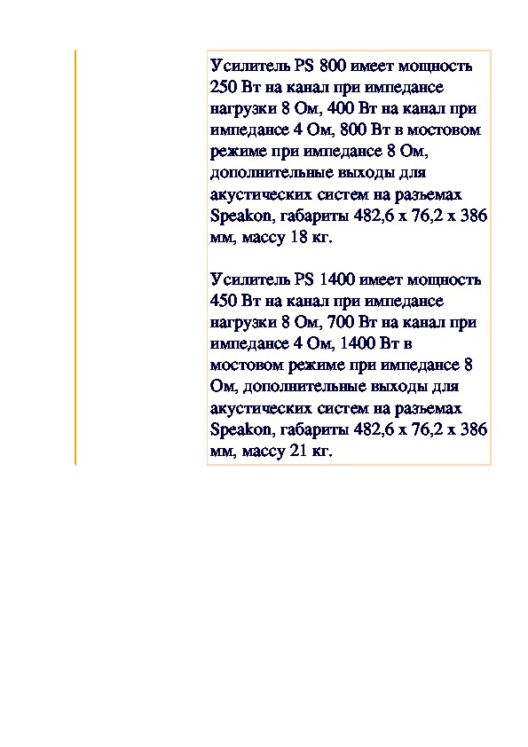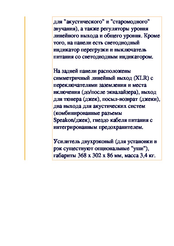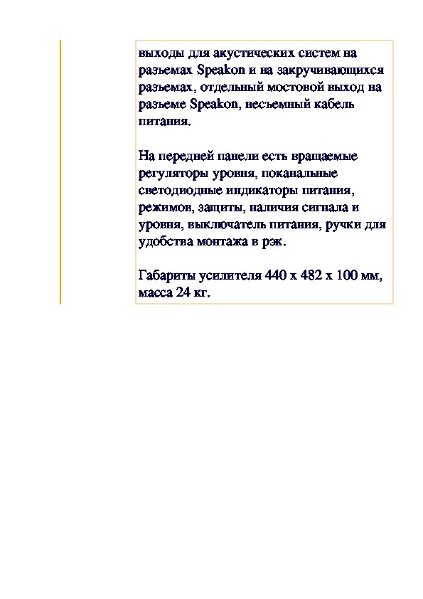 габариты 483 x 45 x 203 мм, масса 5,9 кг.Усилители
