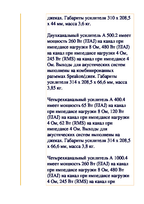 акустических систем выполнены наджеках. Габариты усилителя 310 x 208,5