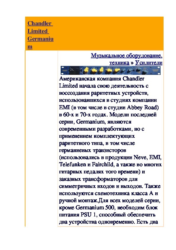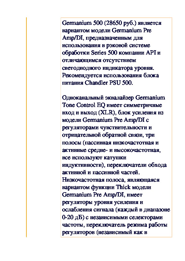 Одноканальный предусилительGermanium 500 (28650 руб.) является