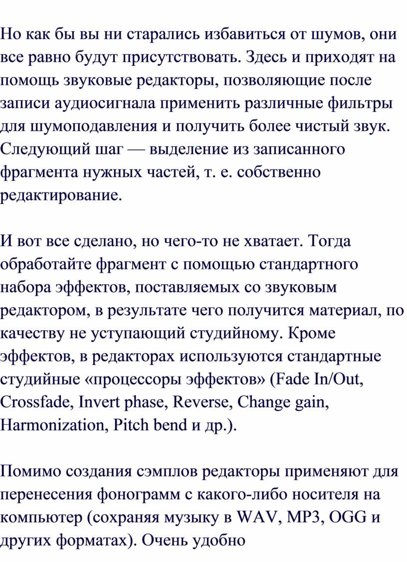 сочетаний, параметров звука, приемов подачи, смысла, визуализации, о которых