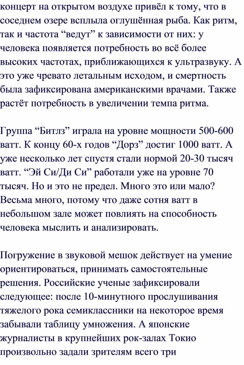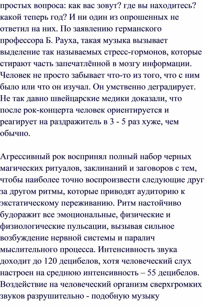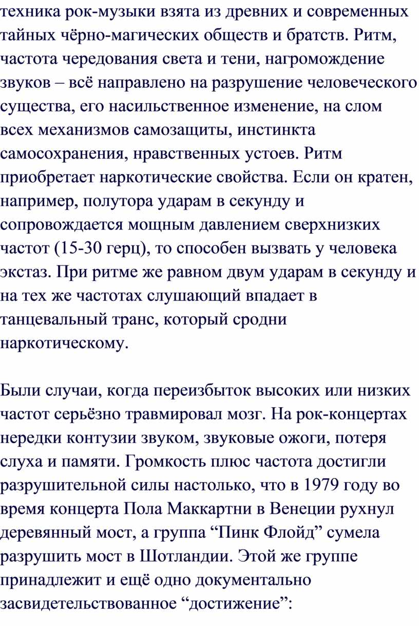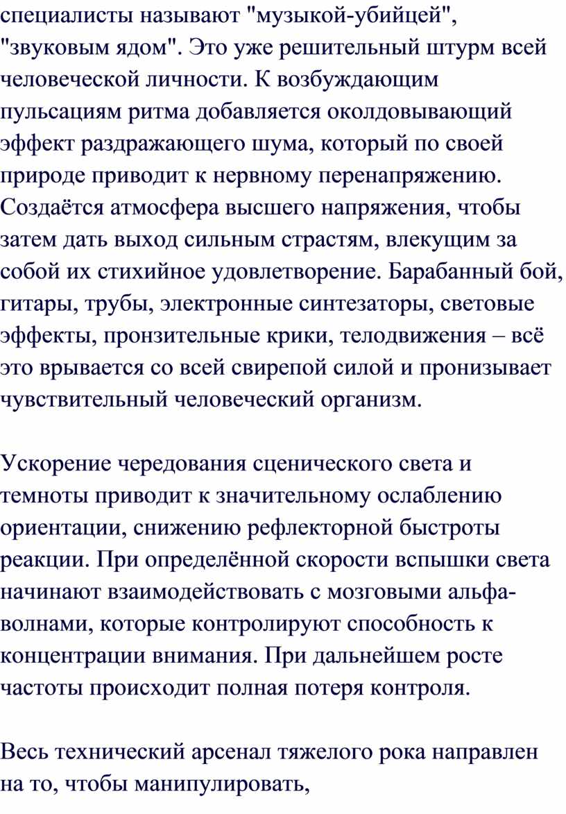 Каким образом достигается негативное влияние рок-музыки на человека? Вся
