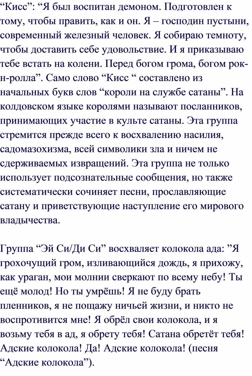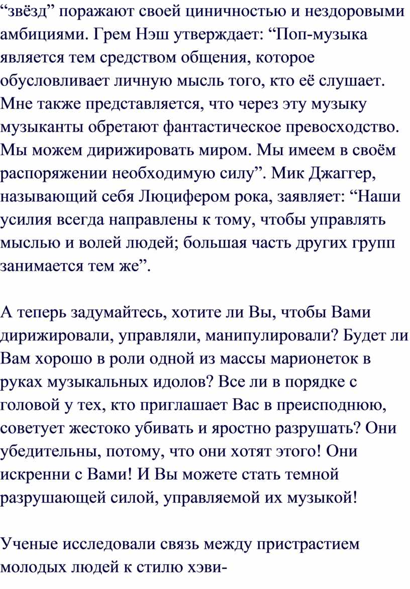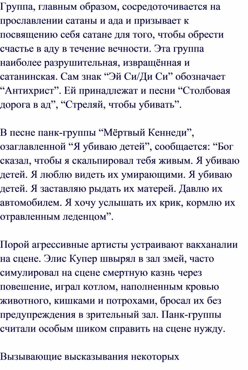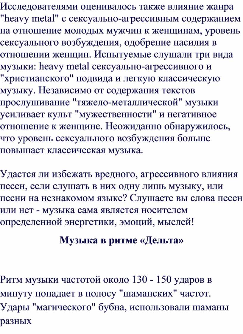 содержания текстов прослушивание "тяжело-металлической" музыки