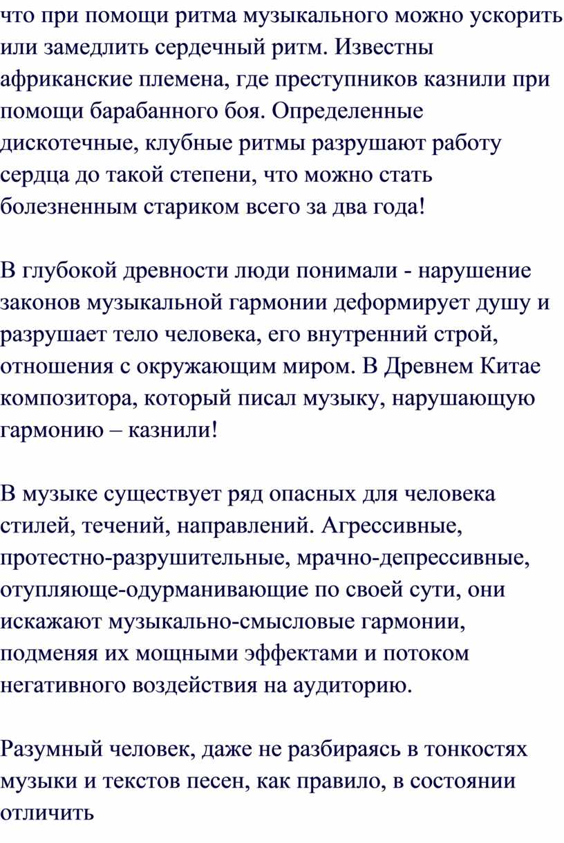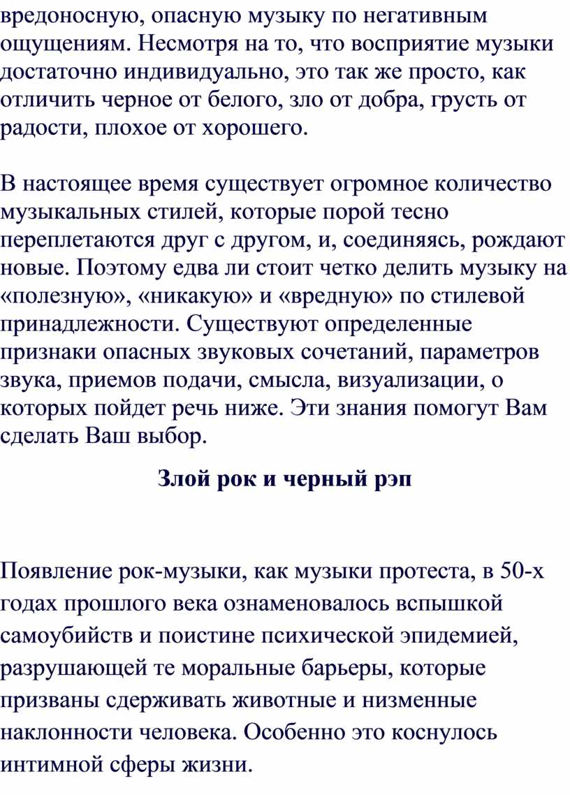 правило, в состоянии отличить вредоносную, опасную музыку по негативным