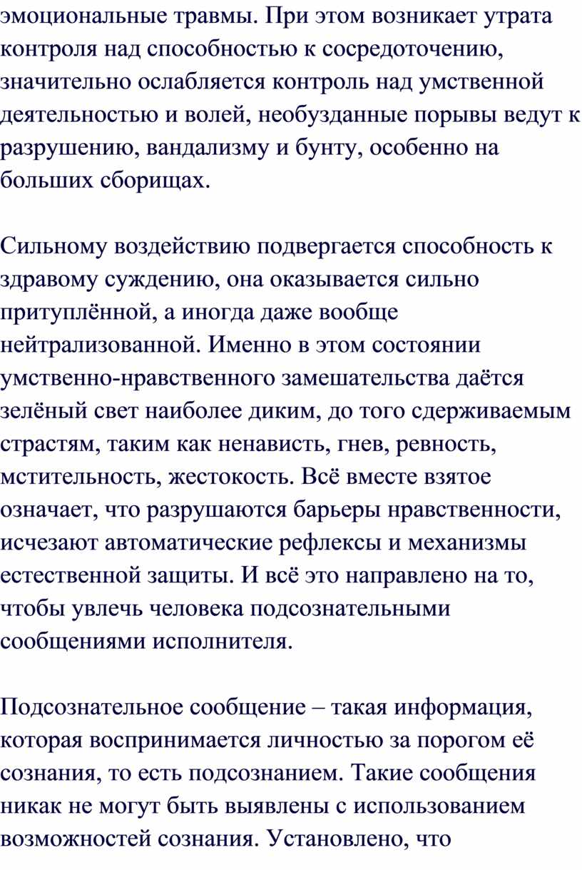темноте, что представляет полный набор психотехнических приемов, вызывающих