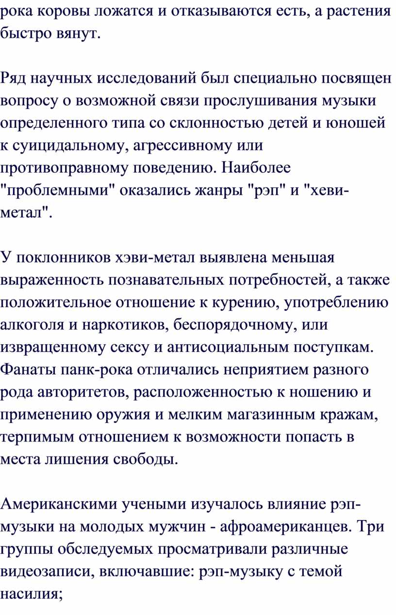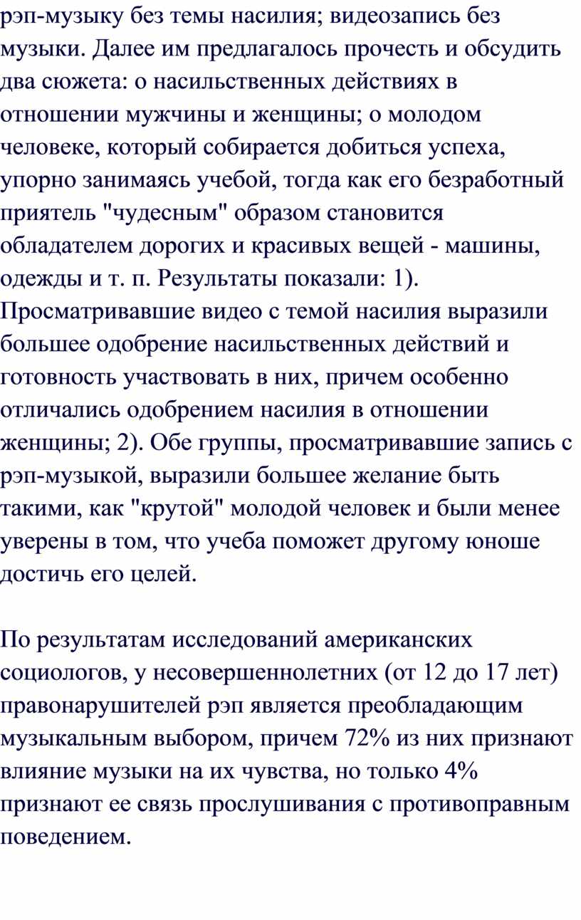 12 до 17 лет) правонарушителей рэп является преобладающим музыкальным