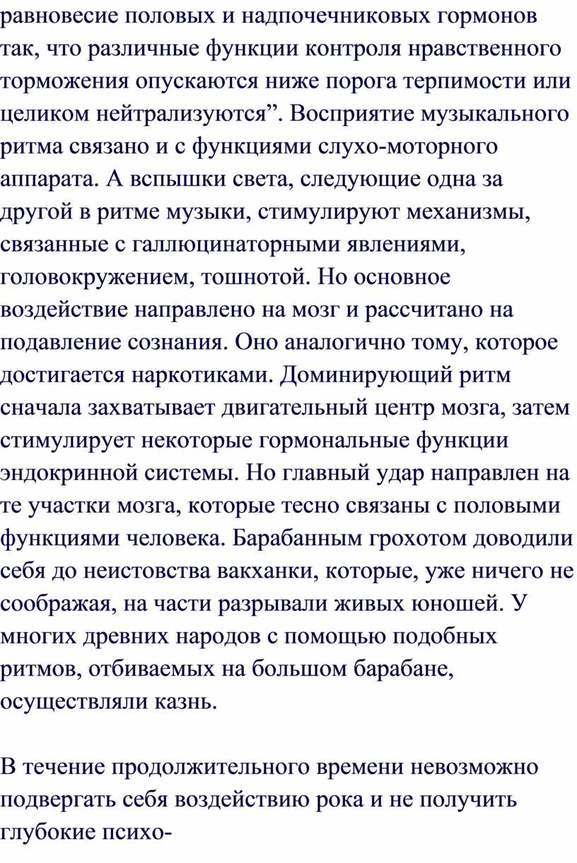 самосохранения, нравственных устоев. Ритм приобретает наркотические свойства.