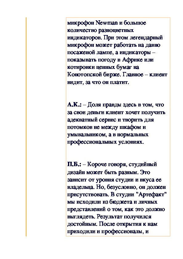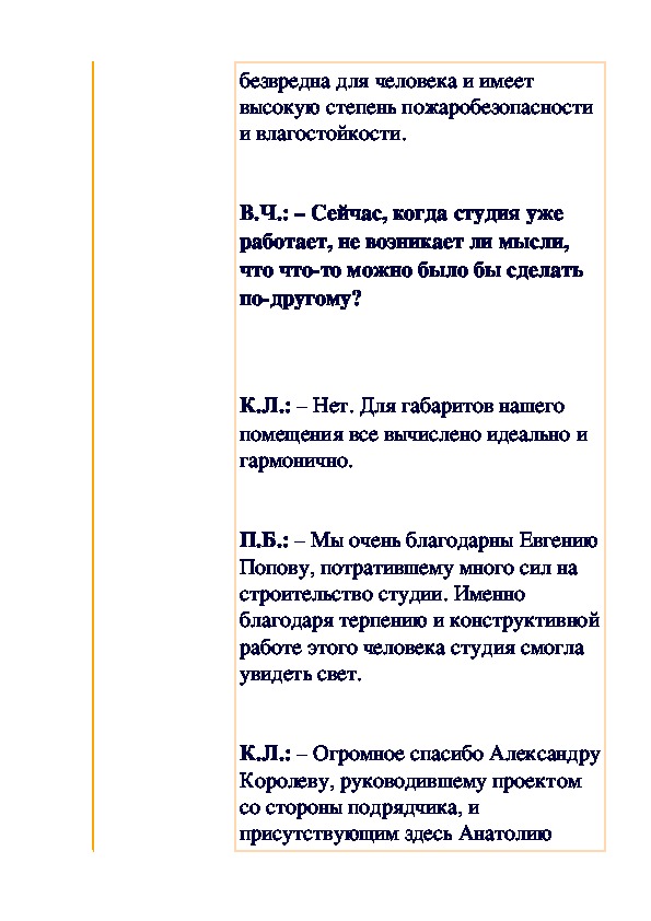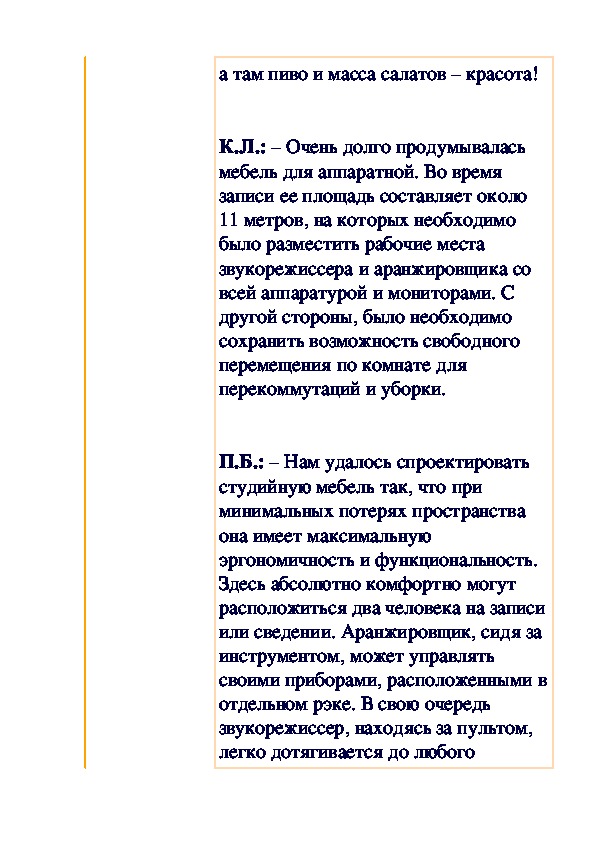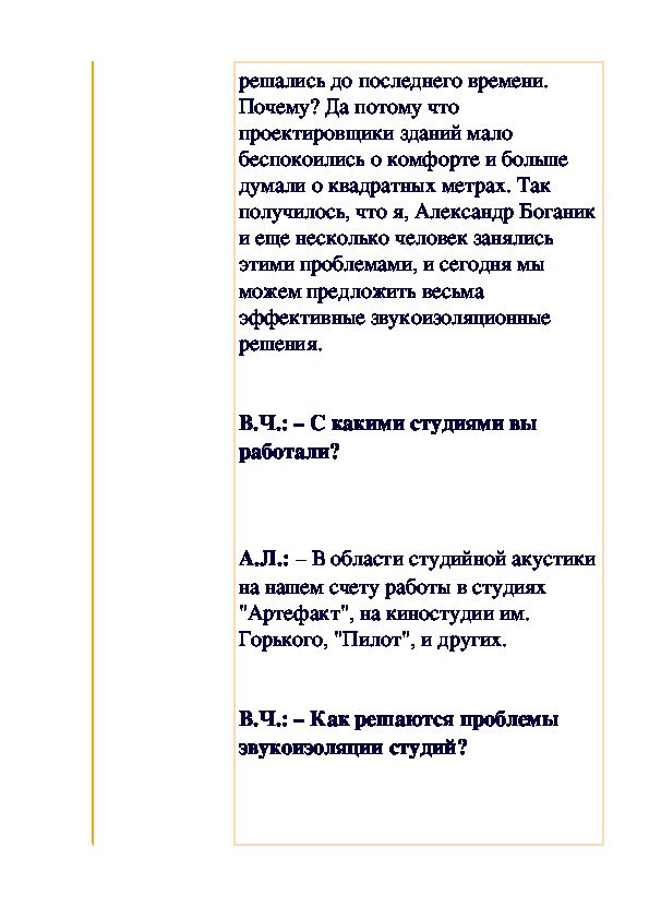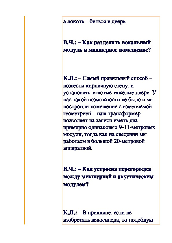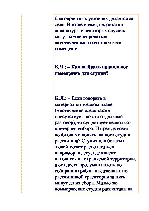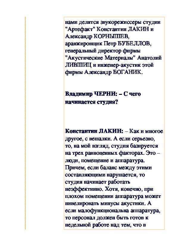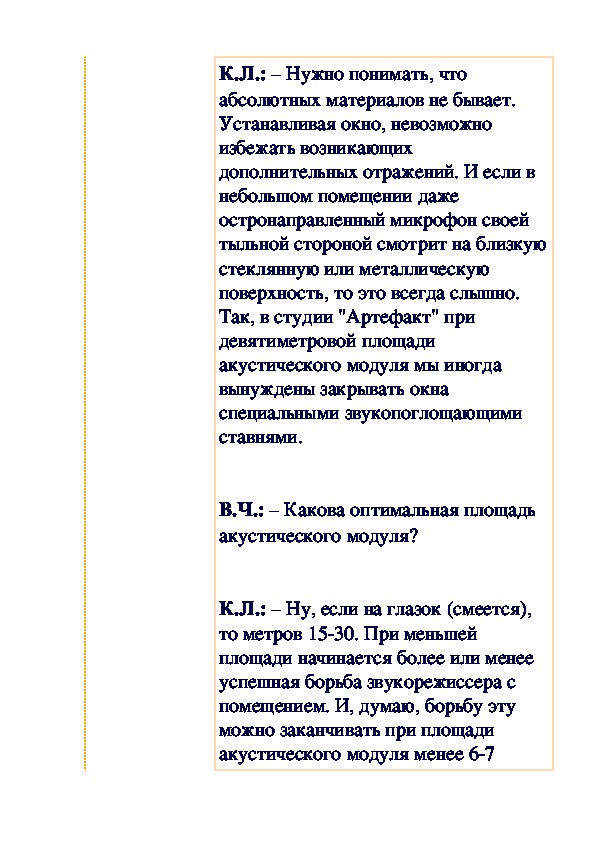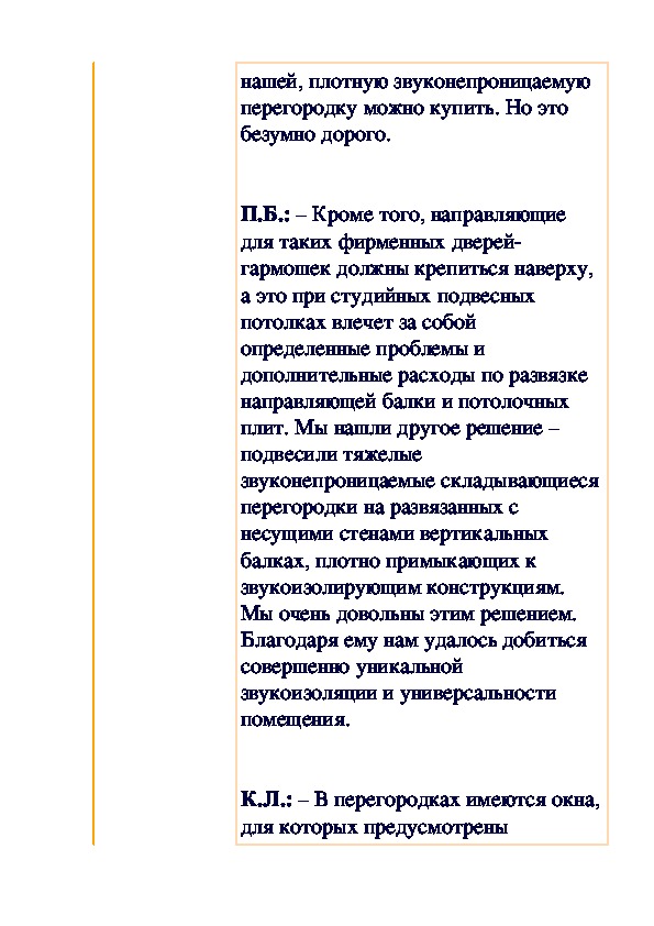Говоря о коммерческих студиях, невозможно обойти стороной вопрос выбора подходящего помещения и подготовки его к студийной работе. Здесь – решение вопросов звукоизоляции, акустики, дизайна и экологии. Огромное значение имеет качество применяемых звукоизоляционных материалов и технологий. Ведь в любом городе существует невероятное количество источников шума и вибраций. И если в повседневной жизни удается в большей или меньшей степени привыкнуть к шуму проезжающих автомобилей или грохоту трамвайных колес, то как быть при записи, когда урбанистические звуки требуются лишь как пикантные элементы музыкальных композиций?