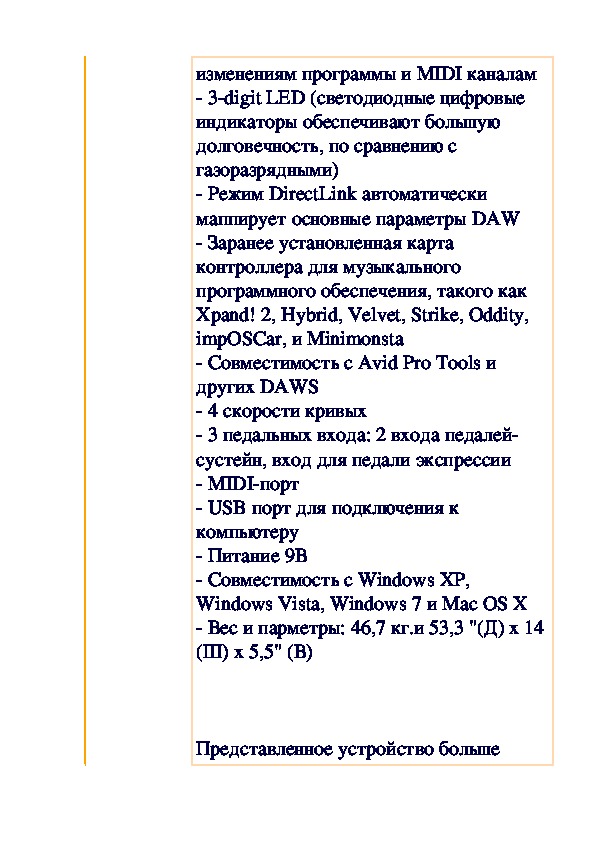 мгновенного перехода к пресетам,изменениям программы и MIDI каналам