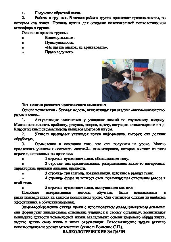 умение ценить свою жизнь и жизнь окружающих. Валеологические задачи активно