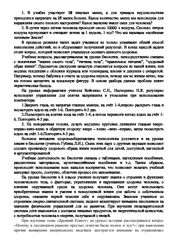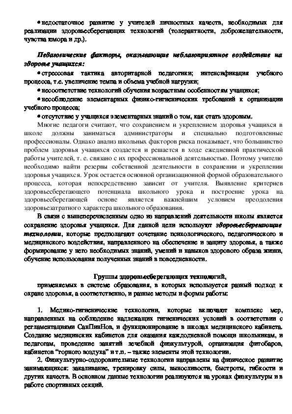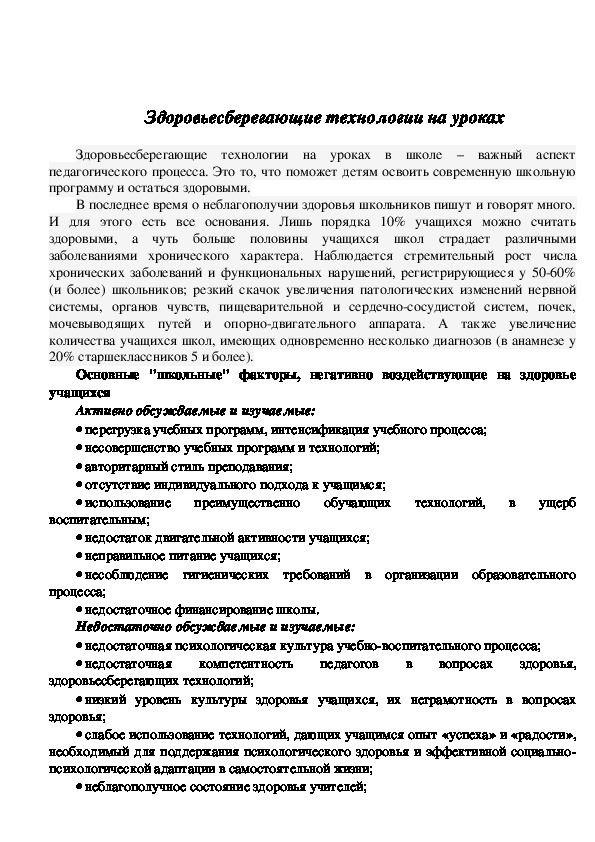Многие педагоги считают, что сохранением и укреплением здоровья учащихся в