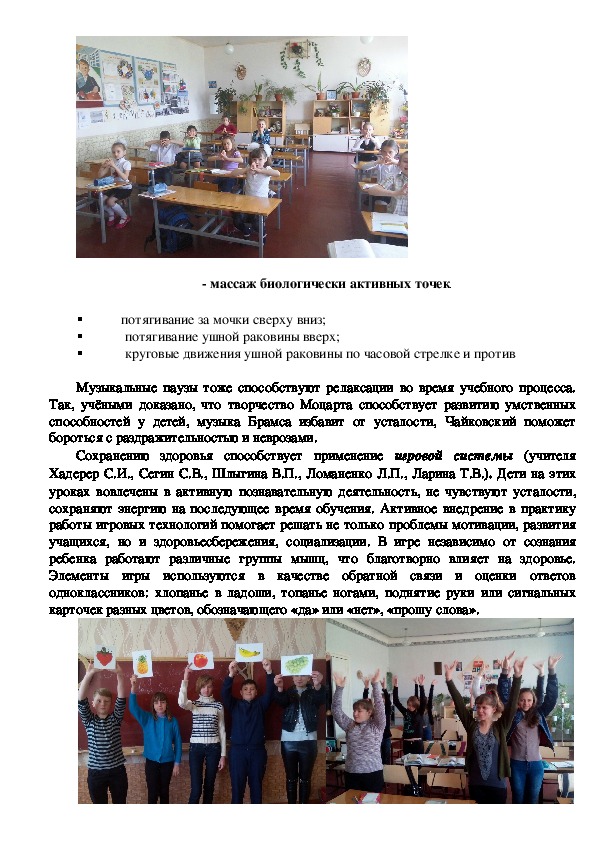Большое внимание здоровьесберегающим технологиям уделяется и на уроках