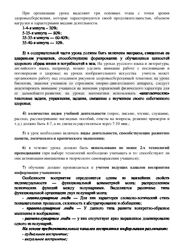 здоровьесберегающего потенциала школьного урока и построение урока на