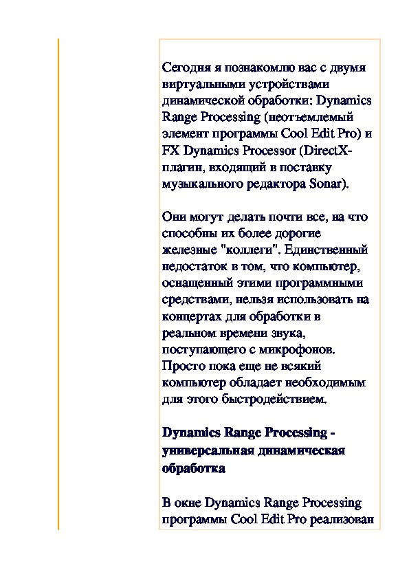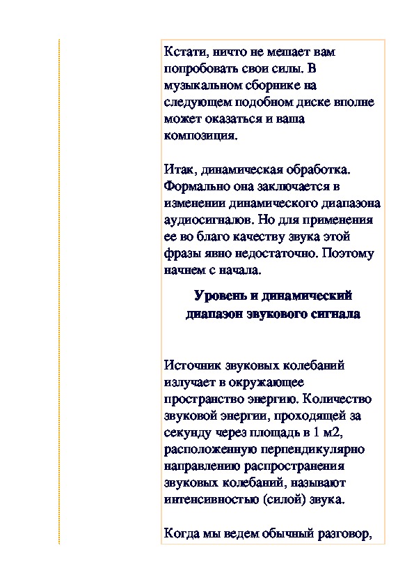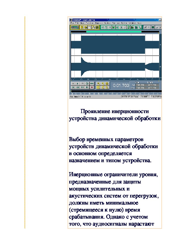 Давайте подробно остановимся на рассмотрении тех манипуляций со звуком, которые позволяют добиваться появления таких эффектов, как, например, эхо, реверберация и т.п. Существуют различные способы преобразованиях звука (амплитудные, частотные и проч.). На основе этих преобразований реализуются звуковые эффекты. Принципиально, целью обработки звука является придание существующему звуку каких-то новых качеств или устранение нежелательных. Звуковые эффекты относятся к тем преобразованиям звука, которые придают звучанию новые формы или полностью изменяют звуковую информацию.