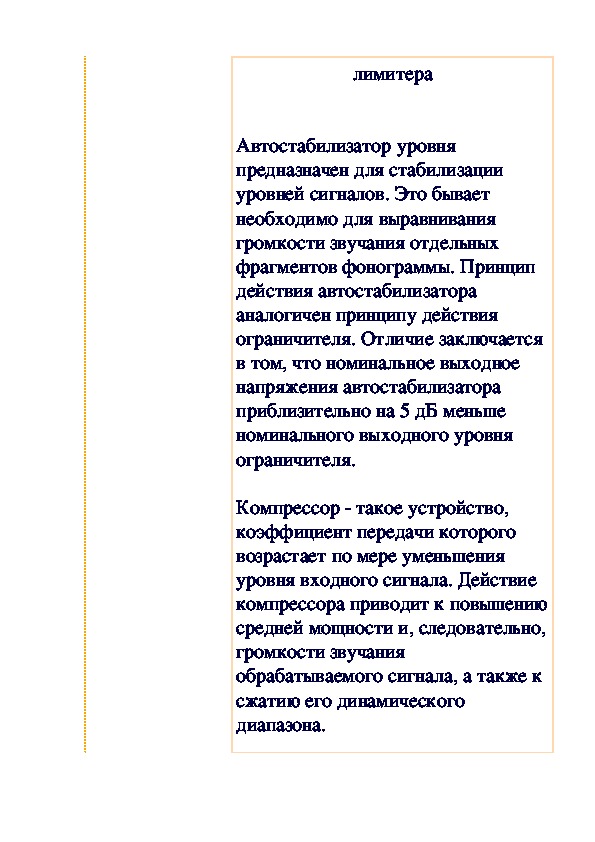 термин для компрессора и лимитера,