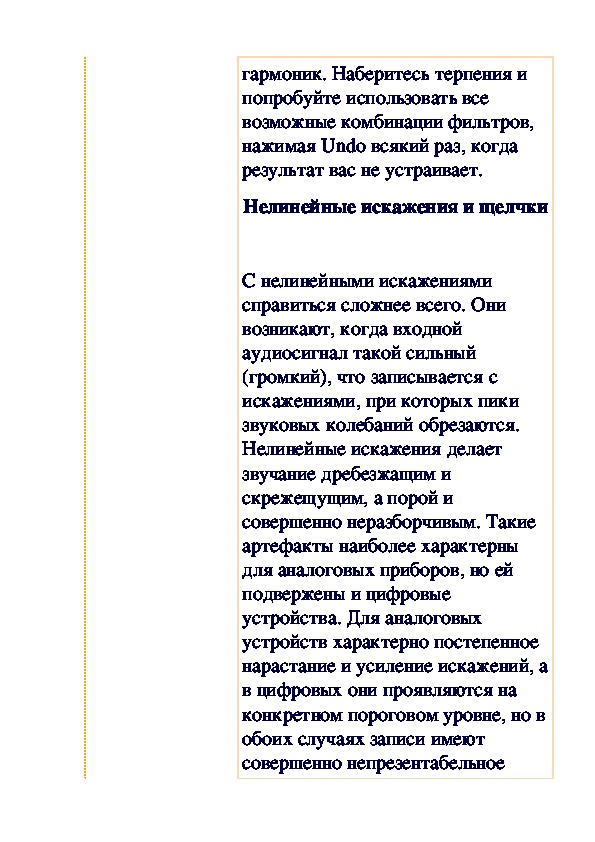 характерных искажений, которые может