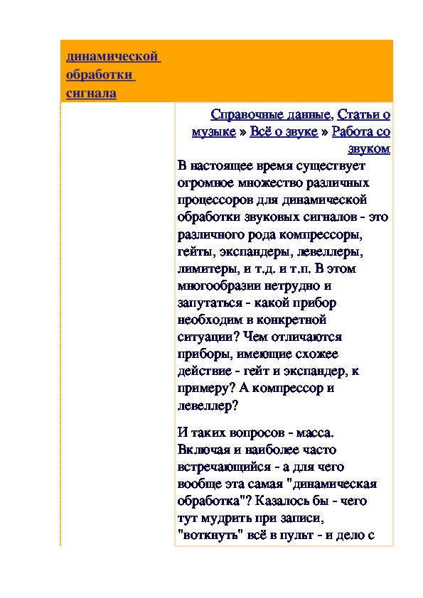 Справочные данные, Статьи о музыке » Всё о звуке » Работа со звуком