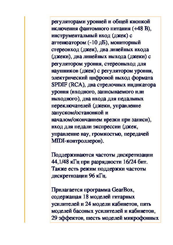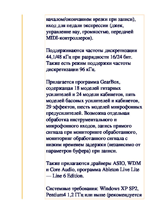 29 эффектов, шесть моделей микрофонныхпредусилителей. Возможна отдельная