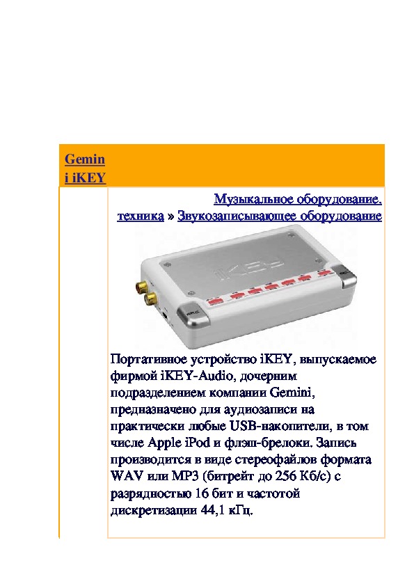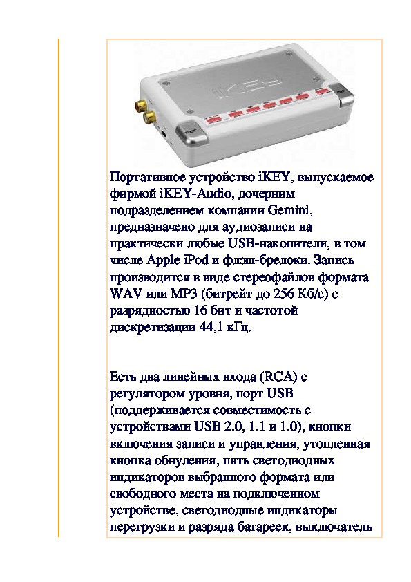 техника » Звукозаписывающее оборудованиеПортативное устройство iKEY, выпускаемое