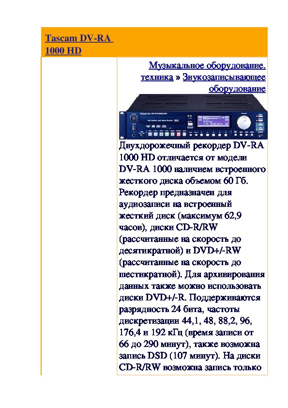 й рекордерTascam DVRA