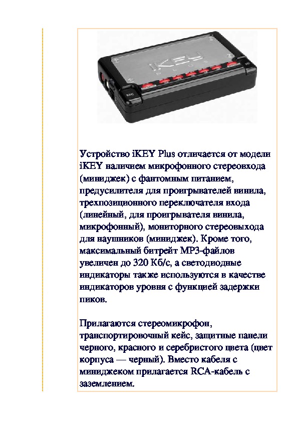 Устройство iKEY Plus отличается от модели