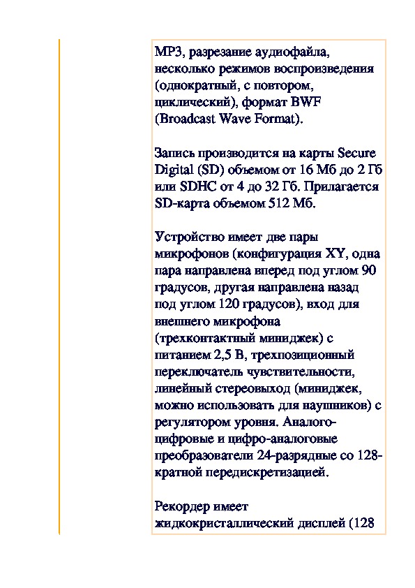 SDкарта объемом 512 Мб.Устройство имеет две пары