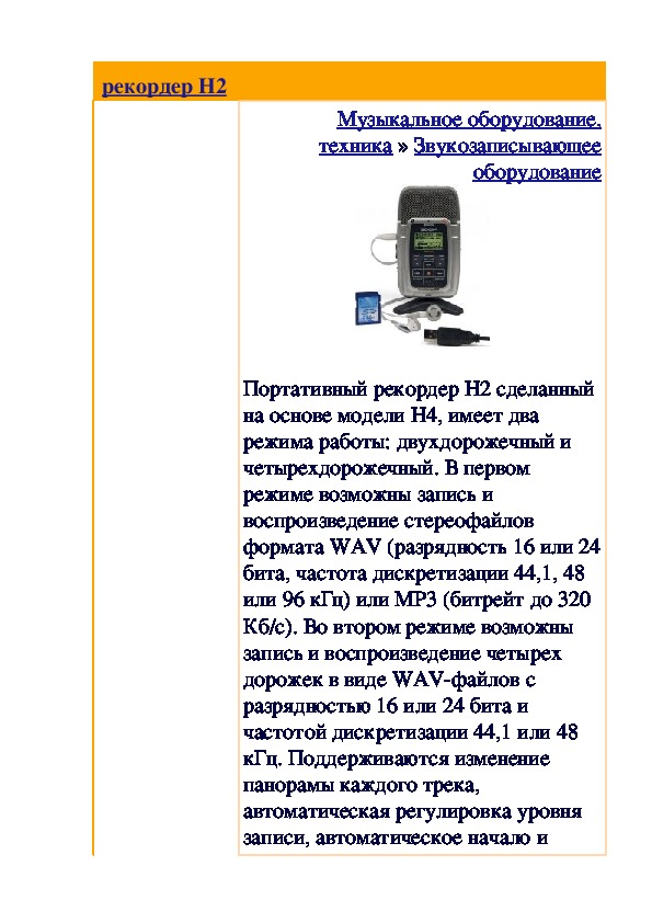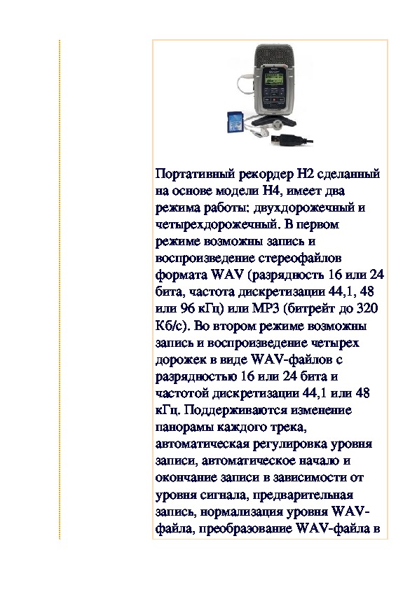 оборудованиеПортативный рекордер H2 сделанный