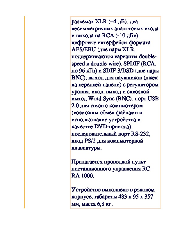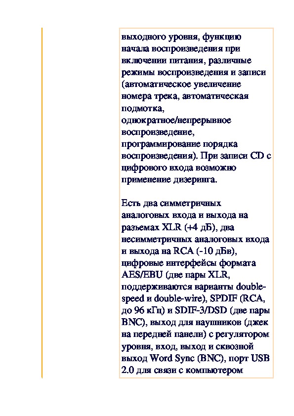 аналоговых входа и выхода наразъемах XLR (+4 дБ), два
