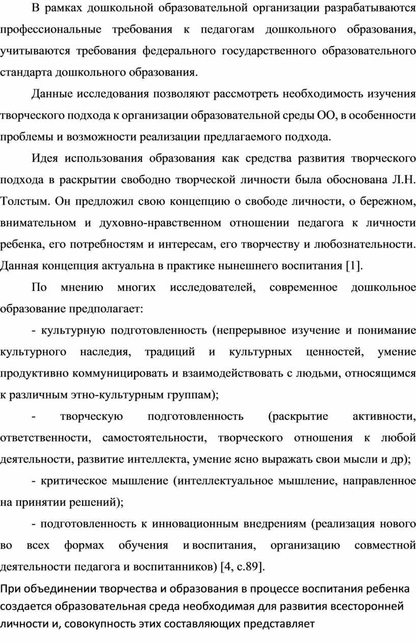 ТВОРЧЕСКИЙ ПОДХОД К ОРГАНИЗАЦИИ ОБРАЗОВАТЕЛЬНОЙ СРЕДЫ : ПРОБЛЕМЫ И ВОЗМОЖНОСТИ РЕАЛИЗАЦИИ