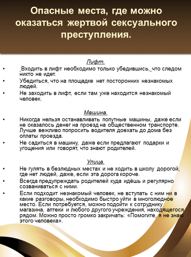 Опасные места, где можно оказаться жертвой сексуального преступления.