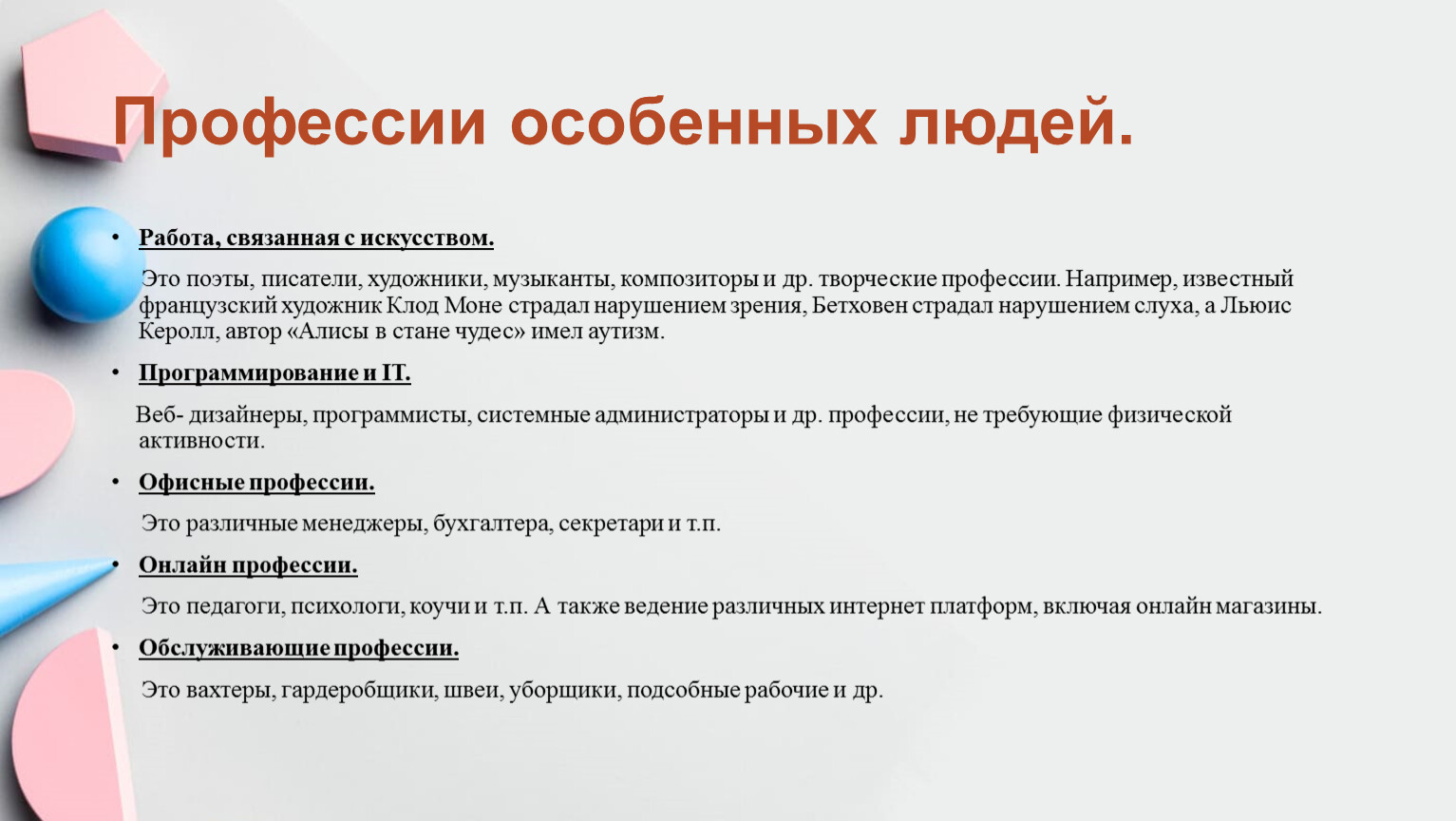 Профессии особенных людей.