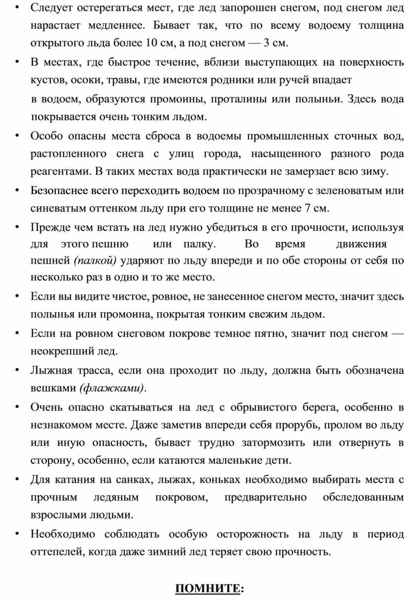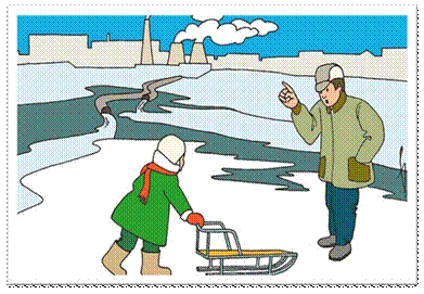 • Для катания на санках, лыжах, коньках необходимо выбирать места с прочным ледяным покровом, предварительно обследованным взрослыми людьми.