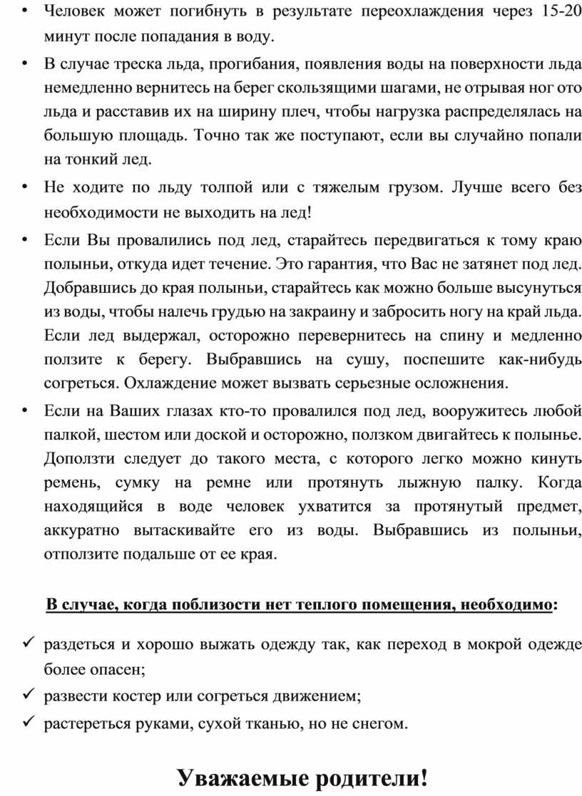• Человек может погибнуть в результате переохлаждения через 15-20 минут после попадания в воду.