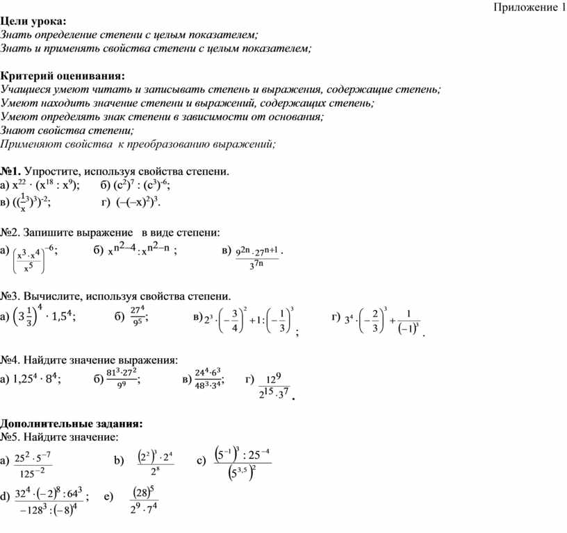 Знать определение степени с целым показателем;