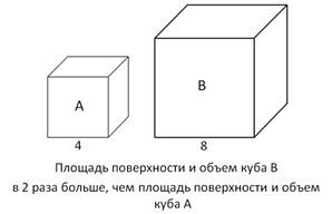 Учащиеся могут разъяснить зависимость между линейным размером и площадью/объемом куба. |