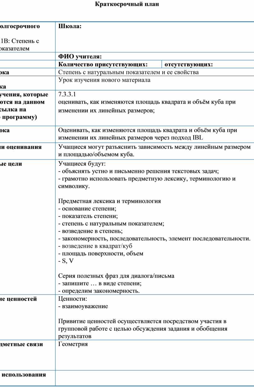 Раздел долгосрочного плана: Раздел 7.1В: Степень с целым показателем |