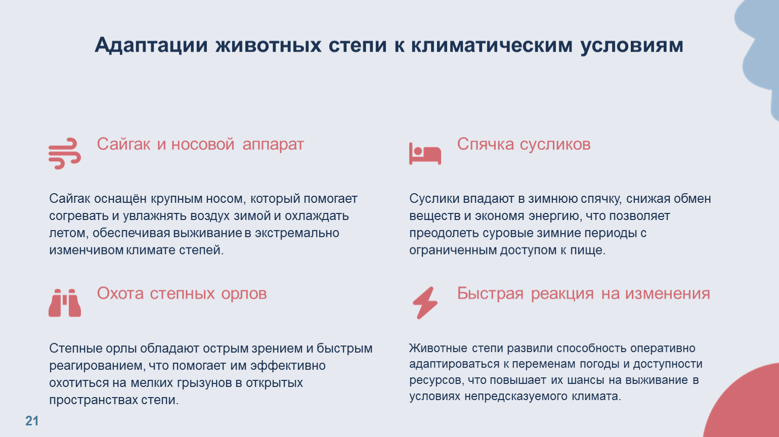 Адаптации животных степи к климатическим условиям