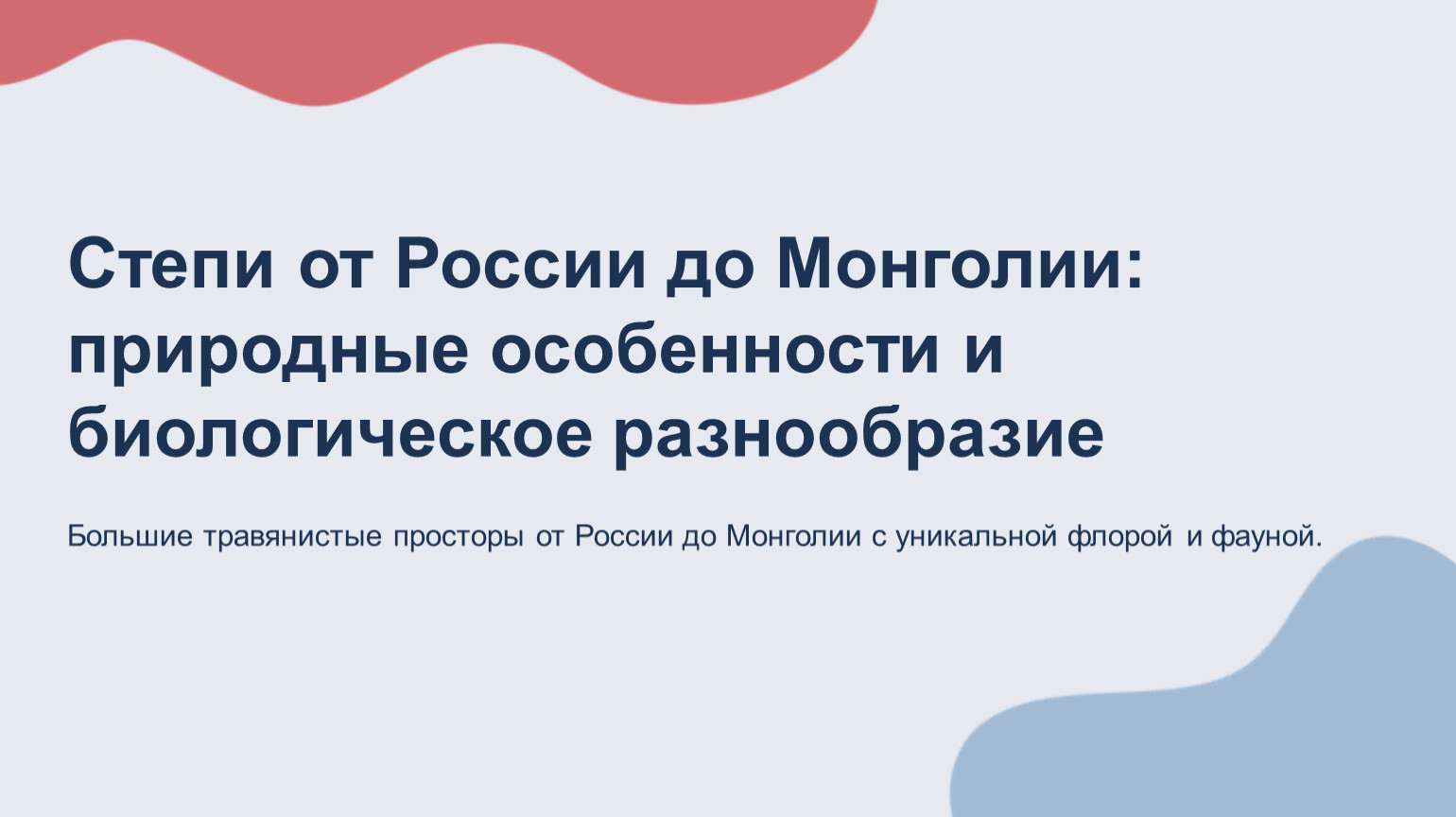 Степи от России до Монголии: природные особенности и биологическое разнообразие Большие травянистые просторы от России до Монголии с уникальной флорой и фауной.