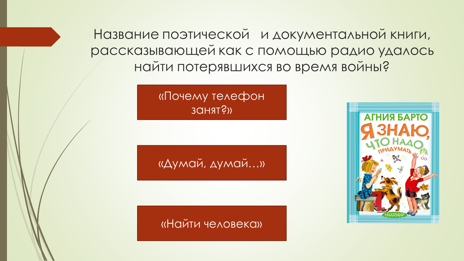 Название поэтической и документальной книги, рассказывающей как с помощью радио удалось найти потерявшихся во время войны?