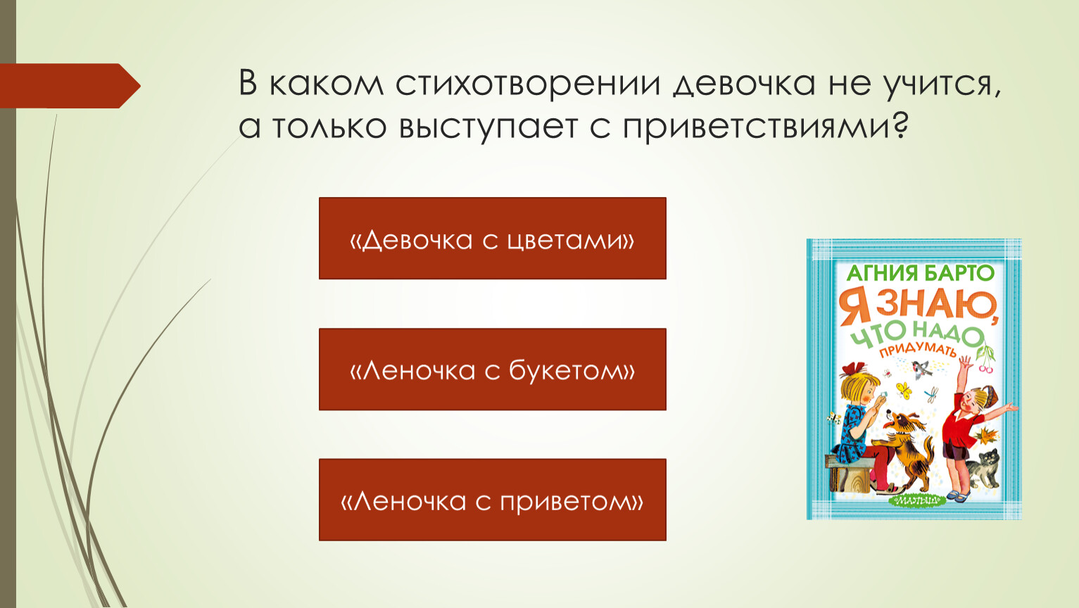 В каком стихотворении девочка не учится, а только выступает с приветствиями?