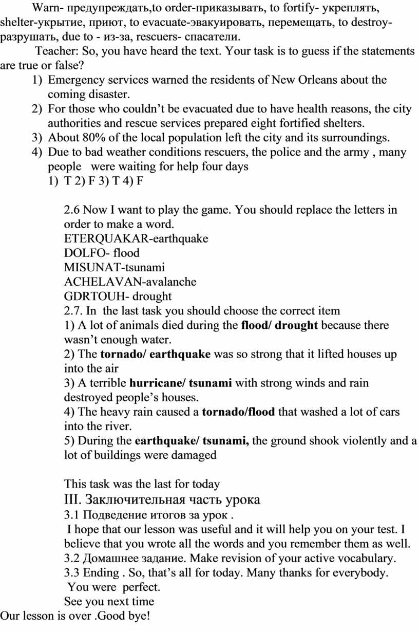 2.5 Listening. Text Natural disasters ( video 3). Listen the text and decide if the statements are true or false?