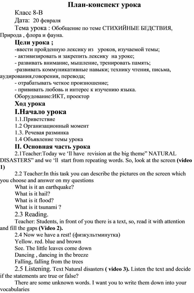 План-конспект урока