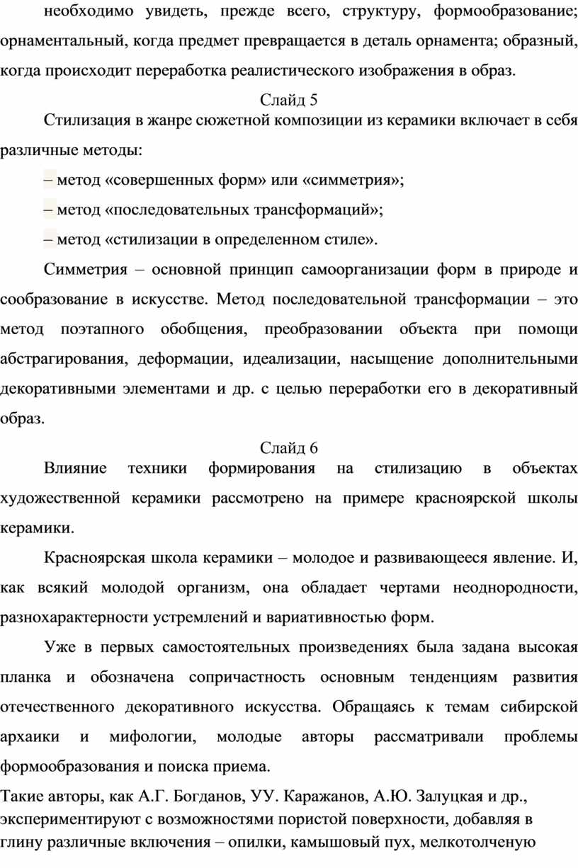 Влияние техники формирования на стилизацию в объектах художественной керамики рассмотрено на примере красноярской школы керамики.