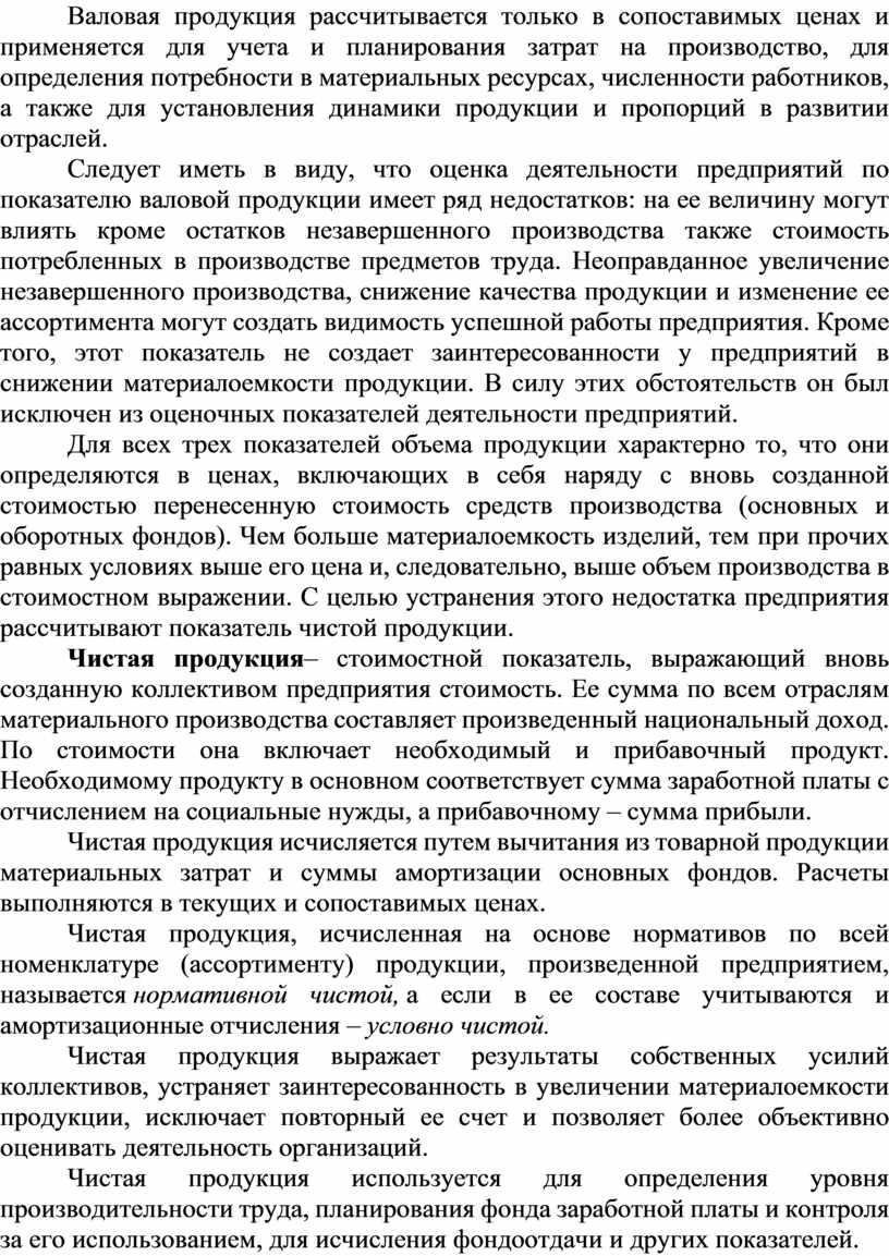 Валовая продукция – это стоимость всей продукции, независимо от степени ее готовности, т.е. стоимость общего результата производственной деятельности предприятия за определенный период.